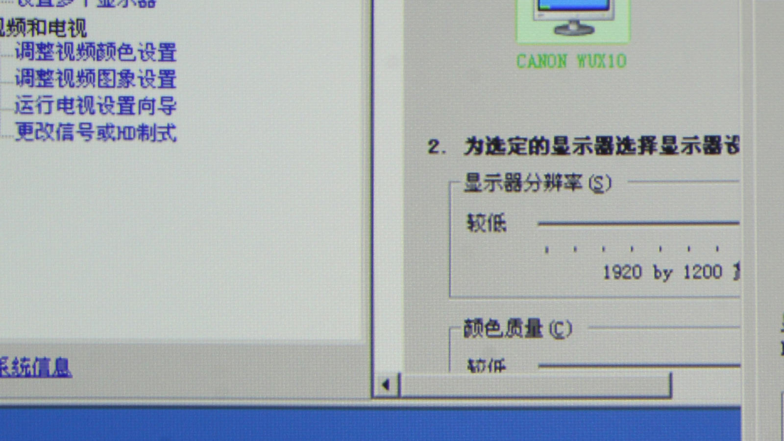 佳能WUX10拥有着丰富的系统功能,菜单中分为四大选项组显示设置、影像调整、系统设置和信息查看,显示设置主要设定显示比例和投射方式,由于是16:10的物理分辨率,在输入信号图像比例控制和根据幕布搭配的显示画面的比例都可以自由选择