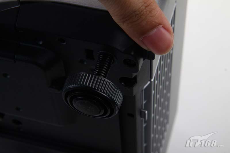 而垫脚的设计也相当独到,虽然不少投影机中也采用了相似的设计,但首先要说的是富可视IN5100系列的垫脚最大可给予5cm左右的调节范围,此外采用的卡口式而非旋转式垫脚也很实用。