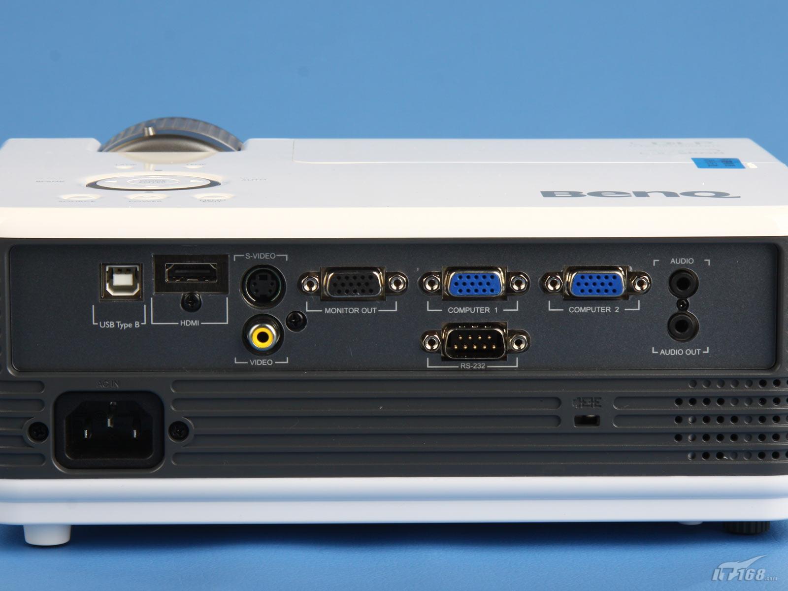 接口包含两组VGA输入,便于演讲轮换电脑的顺利过渡,一组VGA输出,还可以连接显示器给演讲者使用,HDMI接口的配备,大大方便了投影机与新型数字视听娱乐设备的连接,这也是除了外观上的特点之外,MP625P晋身为商住两用机的本钱。