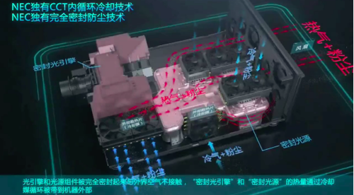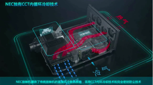 CCT双腔体密封内循环散热技术能同时实现极致防尘和高效散热,这是NEC这项独家专利的核心奥秘所在,是别的厂商不能模仿的。