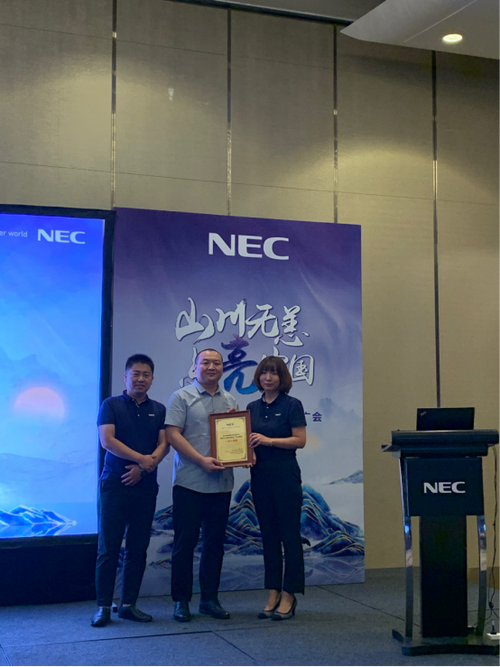 一番精彩纷呈的分享过后,推广会还为北京华泰润德科技有限公司举办了授牌仪式,全场嘉宾共见这一非凡时刻。华泰润德副总经理周可举先生回顾了同NEC长达6年的合作历程,双方将从商务投影机、家用投影机扩展到工程投影领域的合作。周总还表示,站在新的起点上,也有了更广阔的发展空间,并愿意推动更多工程投影项目落地生根。