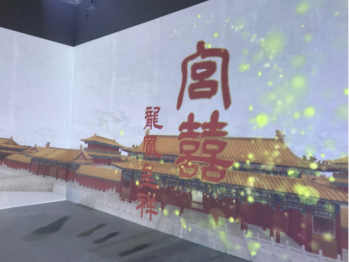 观众零距离体验“宫囍龙凤呈祥”沉浸式CAVE光影秀