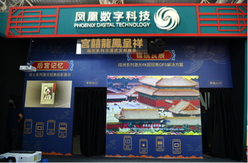 文创IP“宫囍龙凤呈祥”,由北京故宫文化传播有限公司、北京凤凰数字科技有限公司、清控创意智造(北京)文化产业发展有限公司联合打造,其数字内容以清代宫廷画作《载湉大婚典礼全图册》为参考,通过三维渲染真实还原光绪皇帝大婚时的流程、情景、道具、人物。展会现场,NEC激光投影机穿越时空,助力“宫囍龙凤呈祥”数字影像精彩展示,让观者沉浸式感受紫禁城大婚礼仪中的吉祥喜庆和诗赋中“八景凤舆临紫禁”的大气磅礴。