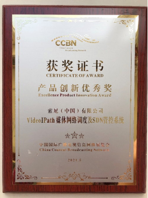 宣布一个好消息:索尼32吋4K HDR监视器PVM-X3200和Video IPath SDN网络管理系统解决方案双双荣获“CCBN2021年度产品创新优秀奖”。