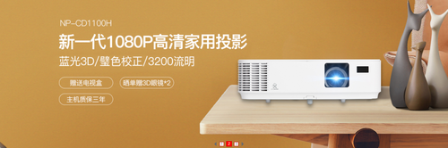 说道家用投影机,我们首先推荐的是来自NEC推出的全新NP-CD1100H家用投影机。该机拥有3200流明亮度,支持1080p高清输出、蓝光3D并拥有影院级的校色技术,可以让家庭用户在家就享受到影院级的试听效果。目前,正值京东618期间,6月30日前下单,并晒单成功者,皆有机会获得2副3D 眼镜及京东E卡等礼品,感兴趣的朋友请不要错过。