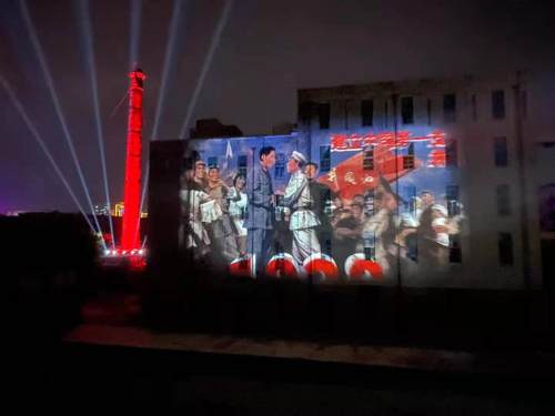在与广大工人阶级关系密切的基层组织,如河北沧州面粉厂,也在为献礼建党百年积极行动,其采用8台NEC英雄系列双色激光工程投影机PX2000UL+(20000流明、DLP激光、WUXGA分辨率)打造户外建筑投影秀,激发职工的劳动热情和创造活力。
