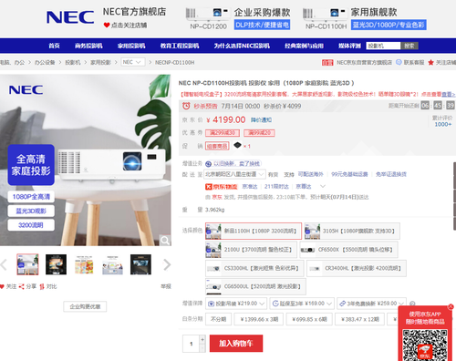 【IT168 导购】 对于近期有计划购买投影机的朋友来说,最近有个不错的消息。针对家庭用户的投影需求,满足家用环境应用,NEC为家庭用户带来了全新的NP-CD1100H家用投影机新品。这款产品,拥有3200流明亮度,支持1080P高清输出,拥有影院级的校色技术,可以让家庭用户在客厅就享受到影院级的视听效果。最近,这款投影机正在京东商城促销,感兴趣的用户请不要错过。