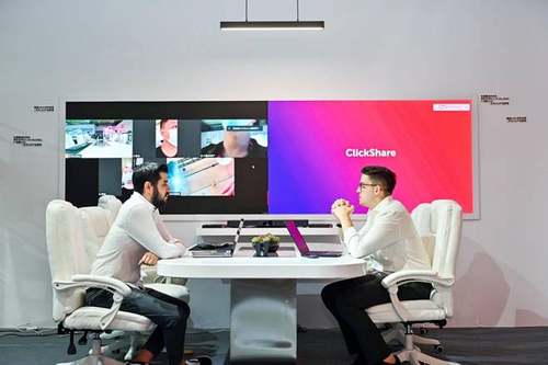 可立享会议系列搭配ICX系列产品,通过专业投影技术,打造了一个处于布鲁塞尔的董事长会议室。模拟不同时区和地区,让现场观众感受从北京到布鲁塞尔的“0”距离远程沟通。同时,可立享全新演示系列与Unisee 500搭配的自由讨论区,也提供了另一种便捷会议体验。