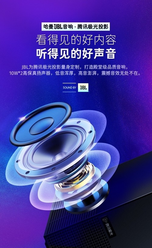 腾讯极光投影P2音响搭载为2*10WJBL音响;极米NEWZ8X音响搭载为2*5W哈曼卡顿等等......