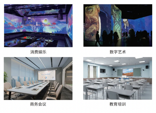 特别值得一提的是,李白短焦系列在应用上更加灵活方便,可以实现小空间大画面的投影效果,非常适合那些空间狭小、投影距离有限,却想打造超大画面的沉浸式展厅应用。李白短焦系列拥有业界同档最优设计,0.44最短投射比,画面0偏移等显著优势将完美满足各类沉浸式CAVE展厅的应用需求。
